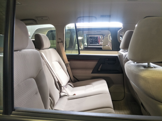 丰田酷路泽4000中东版内部空间非常充裕,座椅采用真皮包裹。驾驶起来,方向、油门与刹车踏板都很轻快。在中控台屏幕的菜单中,我们也看到G-Book智能副驾系统的图标。搭配了8座打孔真皮座椅,前排通风座椅是标准配置。第三排的座椅可以分别向两侧折起,以便获得充足的储物空间。