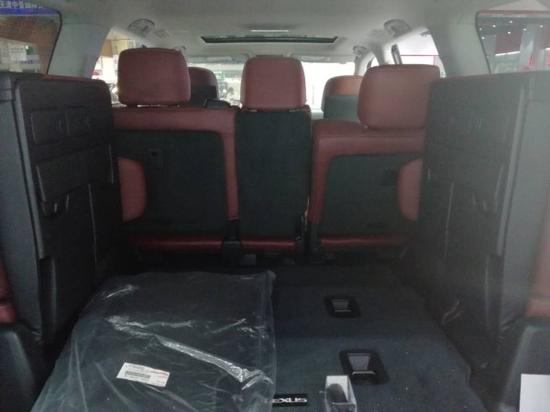 18款雷克萨斯LX570拥有可容纳最多达8位乘客的宽裕乘坐和行李存放空间。LX570加规版后排座椅宽大,足以满足身高195cm的贵宾,第二排座椅的电动滑动式设计,为第三排乘客提供更宽敞的腿部空间,同时车内座椅可以根据车主需要进行多种变换。四区域独立控制自动空调系统可对内室不同区域温度进行独立控制,每位乘员可根据不同要求,精确调整温度。此外,后排坐席上方配置电动可收放9英寸高清晰液晶显示器,让后排乘客尽享惬意旅途。