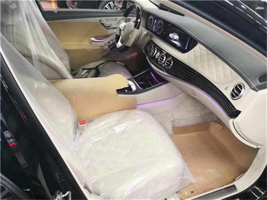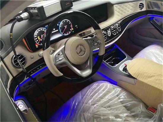 2018款奔驰迈巴赫S680配备了头等舱级后排独立座椅、带V12标志的天鹅绒脚垫、后排电话装置、后排折叠桌、冷藏箱、互联网功能、分屏显示系统、电视信号接收器、触摸板和Burmester(柏林之声)顶级3D环绕立体声音响系统。