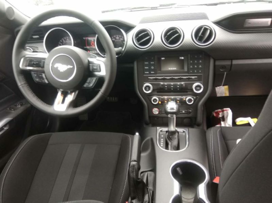 中控台那么贯穿整个前舱的面板,更加高级的黑色碳纤维材料制造。多功能方向盘三幅式造型,旁边的中控物理按钮仔细看发现,新款野马把音响控制按钮放在左边,菜单控制按钮放在了右边,相比旧款对调了一下位置。