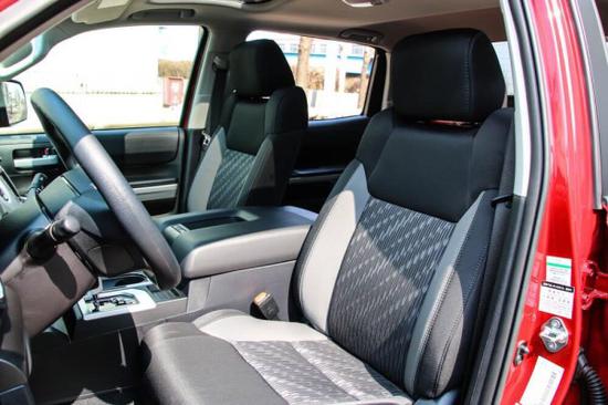 18款丰田坦途皮卡的车头前脸造型上更加硬朗,粗壮的横幅格栅展现出极其坚实的力量感,宽大硬朗的车身,粗犷有力,凸显美国车的风范,前脸明显外张的挡泥板以及前突的坚固格栅尽现强悍风格,强悍外观的背后,有着精细舒适的乘坐空间。