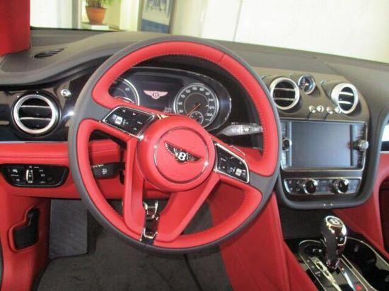 2018宾利添越 4.0 V8柴油黑/红配置:4.0 V8缸三涡轮增压发动机、8前速变速箱、全景天窗、智能钥匙、电吸门、电动尾门、LED头灯、中控台8寸显示屏、空气悬架、选配:1、21寸轮毂 2、舒适包:前排座椅通风按摩加热 3、宾利动态驾驶系统::(可以根据驾驶风格和喜好对悬挂和转向系统进行调校。该系统提供了加强的抓地力、车身控制和转向精确性,却没有牺牲驾驶舒适性) 4、宾利刺绣缝线