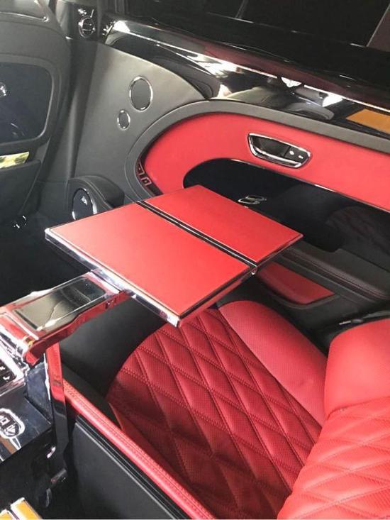 宾利慕尚加长2017黑红,内饰黑红,谷歌地图娱乐报,门柱亮不锈钢做工,下部保险杠亮不锈钢矩阵隔栅,散热片宾利飞翔吉祥物标志,宝石油箱盖,慕尚LED接近灯,光学挡风玻璃,飞机舱倾斜座椅,宾利带翼标志以及镀铬腰线条,急救药箱以及警告三角牌,前后羊毛垫,长中控台带双折叠野餐板桌,后方化妆镜带贴板包边,钢琴黑,冰箱带磨砂玻璃,两把城市仐,门上贴边嵌板,媒介抽屉边以及小型仪表盘,贴边野餐桌,贴边四幅方向盘,前后通风按摩座椅,内部气氛灯,宾利影院--双10.4寸自动折叠平板电脑带谷歌地图,拐角处、角落照相,数字电视(以及数字收音机),宾利naim音响,遥控车库门开启(欧洲链接系统),六碟DVD,泊车钥匙。
