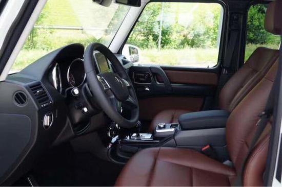 奔驰G350 黑棕 135配置: 三把锁,7速,天窗,皮革电动座椅带记忆,前后座椅加热,电动方向盘,导航,大屏,大灯清洗,氙灯LED,多媒体接口,后挂备胎,拖钩,倒影,前后电眼,换当拨片,镀洛套件,重装包(19轮 踏板 拖钩)