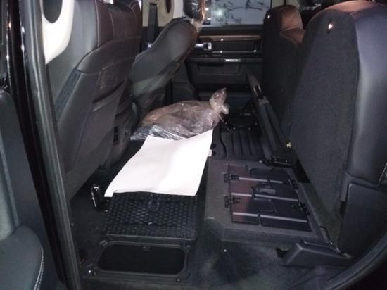 17款道奇公羊1500豪华版5.7中央扶手箱是一个极其宽大的、运动座椅所带来的包裹性要比不同座椅好很多,中间乘客同样拥有头枕,后排座椅支持90°向上掀起,后排座椅在掀起后另有玄机!座椅下方配有折叠板,在必要的时候可以支成一张单人床板,这无疑令人眼前一亮奇点,道奇公羊豪华版的内部设计依旧肌肉感十足,完全采用了美式硬派风格。