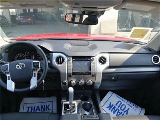 Tundra皮卡是丰田史上最长、最宽、最宽敞的皮卡车,同时该车与以往相比在性能、舒适性及内部空间也有更抢眼的表现。该车长5810mm、宽2030mm、高1940mm。轴距为3700mm。丰田坦途皮卡外观粗犷霸气、性能优越,2驱4驱切换、倒车影像、巡航定速、4轮盘制动,前独立悬挂,后悬挂带有钢板弹簧等众多强大功能及配置,是极坚实可靠的载体。