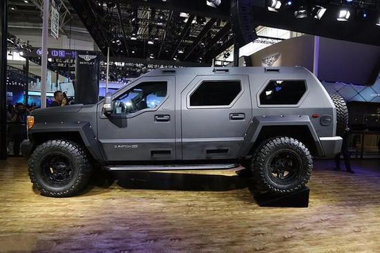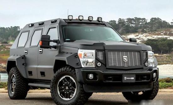 来自美国的乔治·巴顿装甲车全车长5913mm,宽2470mm,高2490mm,轴距3610mm(也就是说可以挂蓝牌哦),车重达到了4吨以上,使用的是6.7升V8柴油发动机和6.7升V10汽油发动机,最大马力429Ps,拥有运动、普通、奢华三种驾驶模式,并搭配带有电控牵引的10AT变速箱并且具备红外线夜视功能,可以进行在全天候全路况行驶。