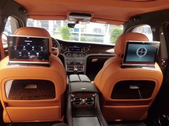 18款宾利慕尚 6.8T 长轴版 配置:穆勒包配抛光轮(21寸抛光轮,穆勒定制踏板,前后羊毛地毯(附带标准加长地毯),高级菱形座椅,4座位均配有宾利徽章刺绣,宾利娱乐包带地图(10.4英寸宾利剧院后排娱乐系统,Naim高级音响),优选包(小飞人,宝石燃油盖,城市雨伞2把,泊车钥匙等),明亮不锈钢门柱装饰,深色遮掩隐私玻璃,航空座椅,全尺寸加长中控台配2个可移动式小桌板,后排头枕带可调节飞翼,后侧化妆镜饰面环绕,情绪灯,DVD 6碟播放,备用轮,数字电视,单色4辐真皮方向盘等。