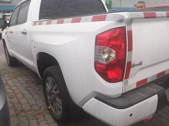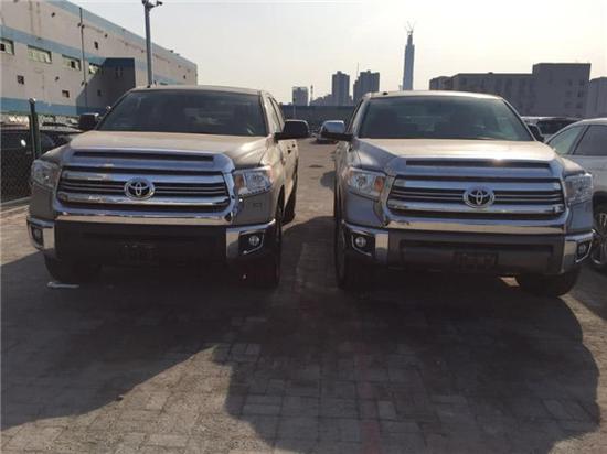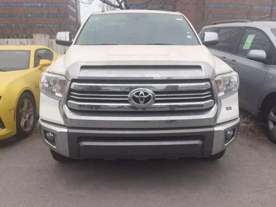 17款丰田坦途1794皮卡车头和侧面是最大的盲区,极度考验驾驶者对车辆的操控能力。前脸和红杉如出一辙,宽阔的肌肉感是美式车的典型风格,丝毫没有日系车阴柔的一面。