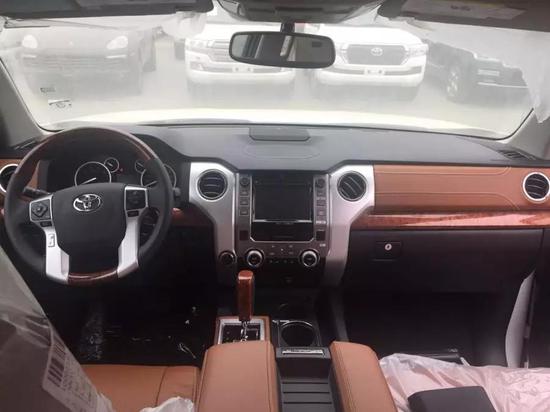 17款丰田坦途的内饰做工十分精致,真皮座椅、桃木的方向盘、动感仪表盘,在简约的同时,透露着稳重与典雅的气息。仪表盘几乎颠覆了之前的全部设计,造型极为新颖。换挡杆造型没有变化,中央扶手箱的凹槽可以存放手机等杂物。