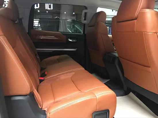 17款丰田坦途方向盘后面就是整齐清晰的仪表,后排座椅非常舒适,椅背的倾斜度适中,腿部空间也很大,长途旅行时后排的乘客不会感到疲惫感。还增加了天窗、多功能方向盘、智能语音操作系统以及倒车影像,这些豪华配置使得坦途更具备轿车。