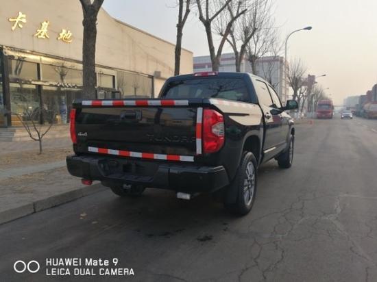 18款丰田坦途,四门五座,宽大硬朗的车身,粗犷有力,凸显美国车的风范,前脸明显外张的挡泥板以及前突的坚固格栅尽显强悍风格。硕大的前灯像是瞪大了的牛眼,所有的部件在坦途上面似乎都成倍放大,狂野气息昭然若揭。新款坦途的一个亮点之处,是它的外后视镜具有转向指示功能。