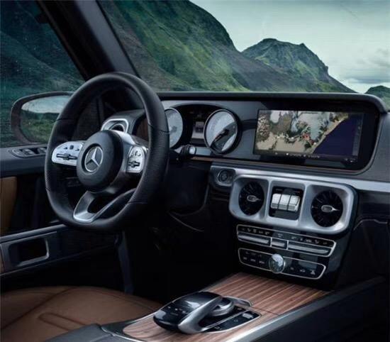 内饰大改 更具豪华感 家族式“方盒子”不能改动,那饱受“诟病”的内饰能变得更加舒适豪华吗?看19款G550怎么做。 中控区域更加宽敞,多功能方向盘也进行了重新设计,并采用了家族式设计的双大屏以及怀挡设计,并配备了MBUX语音助手。