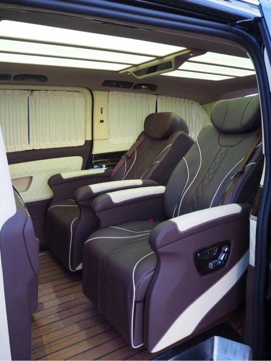 奔驰威霆内饰拥有TEMPMATIC自动恒温空调系统,用冷暖气出风口分离技术,能够完全闭合或开启,可更好的分区控制车厢温度,满足不同乘客的多方面需求,车内空间极大的提高了乘坐的舒适性和在车内办公、开会的方便性。 新车在原有大方简洁的外观基础上加装了半自动电动门、车身同色处理。摆脱以往威霆的朴素风格,显示出奔驰威霆高端大气的一面。 个性化的奔驰威霆房车改装,一方面避免了商务房车的大同小异,另一方面是它满足了我们对个性化时尚的追求,自我生活品位的体现,这也是许多商业大佬会旋转奔驰威霆房车改装的路子,而非原型车辆的重要原因之一。
