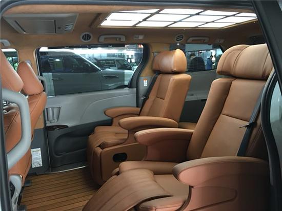 18款丰田塞纳商务车车舱宽阔,安静,座椅全部采用双色真皮,织布,由于广泛的采用了吸音的材料,能提供最佳的乘座舒适性。而新车标配的6气囊和ABS、ESP等安全配置,在驾乘中更多一份安心。