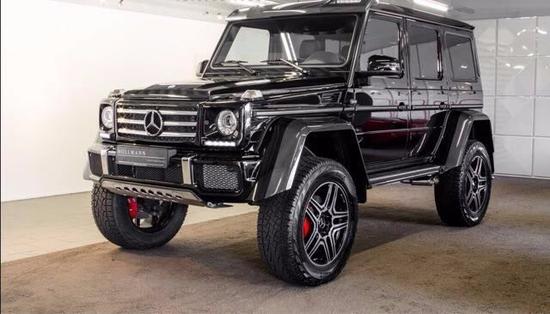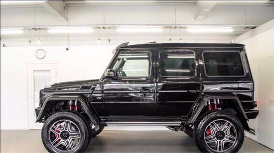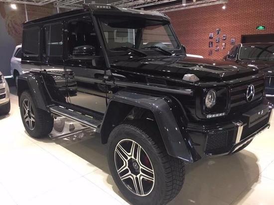 17款奔驰G500 4x4车型颜色现车价格优惠幅度现车情况奔驰G500 4x4齐全电议电议充足奔驰G5004x4电议 7速/皮顶/碳纤维内饰/前排座椅加热带通风/碳纤维轮眉/车顶碳纤维扰流板带LED上雾灯/门式车桥传动系统/黑色车顶/AMG包围/不锈钢双车底保护/可调悬挂/22轮V8双涡轮增压4.0升发动机,顶配,AMG的M178,悬架升高离地450mm,新一代G级越野车的发动机和底盘还采用了牵引能力达3.5吨的设计,因此还能够牵引船只、货车或宿营车,车宽2100mm,车高2250mm,该车既可以将MT胎装在18寸两片式带锁轮圈上使用,还可以在城市道路上换上325 55/R22的铝圈