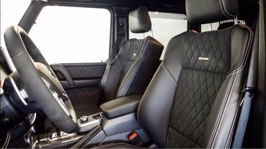 奔驰G500不过外观并不低调,劳伦士为它带来了类似AMG版本的运动包围。前保险杠被分成 了三个方形的进气口。轮圈则装上了和AMG款式相近的大五星款式,并采用黑色设计,加上整个黑色的 车身,流露出霸气的气质,这套轮圈尺寸达到了22英寸,采用轻质合金打造,配上295/35 R 22的轮胎 。