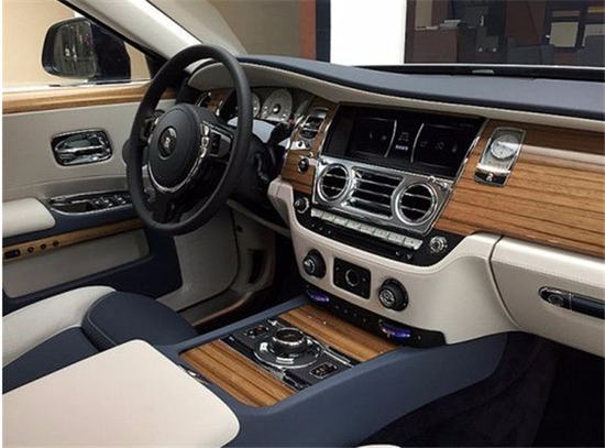 18款劳斯莱斯古斯特采用和幻影相同的制作标准,将奢华、典雅和科技融入内饰中,精选的胡桃木面板,加上钢琴烤漆和镀铬装饰,由2000名工人,经过60双手,花费至少20天打造。