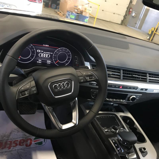 18款奥迪Q7 (配置|询价)高大挺拔,前脸的大嘴相当霸气,LDE等的U形设计方方正正、棱角分明,在保留SUV的特点的同时,车身线条简洁流畅,运动感和时尚感兼备。车尾具有典型的奥迪家族作风,大气沉稳、低调内敛。曲线尾灯的时尚造型为设计加分。全新奥迪Q7在内饰设计上简直有了天翻地覆的变化,简洁的中控台配备有8.3英寸的可收纳液晶显示屏,并采用铝制和木质饰板相搭配,更加突显新车的豪华感与科技感。