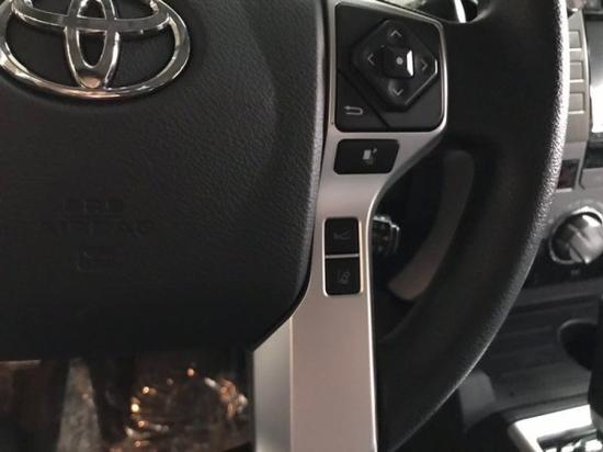 18款丰田坦途TLD SR5加规版稳重大气只中透露着温馨,整体布局干净利落。内部装饰更接近SUV,肌肉感的设计同样延续到内饰的设计中。木质的应用让这辆车拥有了几份细腻典雅的感觉。仪表采用橙红色指针读取信息非常醒目,车内中央车顶 储物格及面板一气呵成,增加了空间利用率。