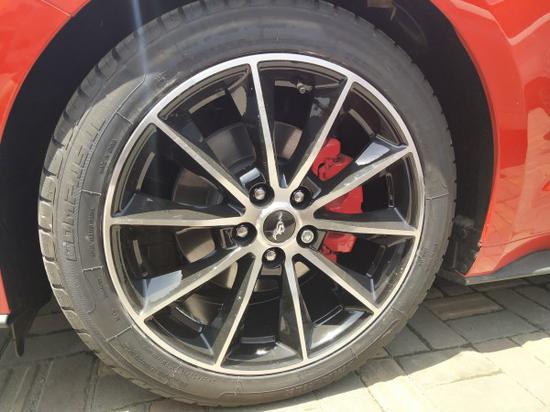 内饰方面:打开车门看到18款野马的内饰,如果不仔细看还发现不出明显的不同,总体变化不大。其中最大的不同就是中控台那么贯穿整个前舱的面板,之前是银色的铝制材料,现在变成了更加高级的黑色碳纤维材料制造。多功能方向盘还是原来的三幅式造型,旁边的中控物理按钮仔细看发现,新款野马把音响控制按钮放在左边,菜单控制按钮放在了右边,相比旧款对调了一下位置。