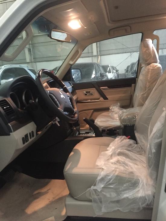 18款中东版帕杰罗 V97 金标顶配 真皮三菱 PAJERO GLS 3.8L 真皮座椅天窗版配置:3.8L汽油欧四排放,243匹马力,扭矩333N.m,5速自动变速箱带运动模式,超选分时四驱系统,车身尺寸4900*1845*1900mm,轴距2780mm,助力方向盘,镀铬电动外后视镜集成转向灯,电动车窗,中控车门锁,儿童安全锁,后桥差速锁(无限滑差速器),轮胎尺寸265/60R18 110H,铝合金轮毂,定速巡航,无钥匙进入,智能折叠钥匙,车辆防盗,发动机盖板,胎压监测系统,七座真皮座椅,后扰流板,侧踏板,带镀铬装饰前雾灯,黑色行李架,后倒车雷达,内外镀铬门把手,后风挡除雾,双开大天窗,大灯清洗,前后挡泥板,高位刹车灯,真皮桃木方向盘,多功能方向盘,倒车影像,Rockford 12扬声器,主驾座椅8向调节,侧安全气囊+气帘,桃木中控台,儿童座椅锚点,冰箱,全自动空调,前排双安全气囊,88L油箱。白米,黑米,棕米,金米,灰米