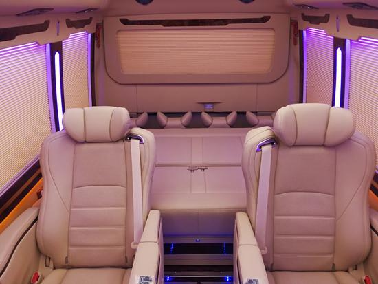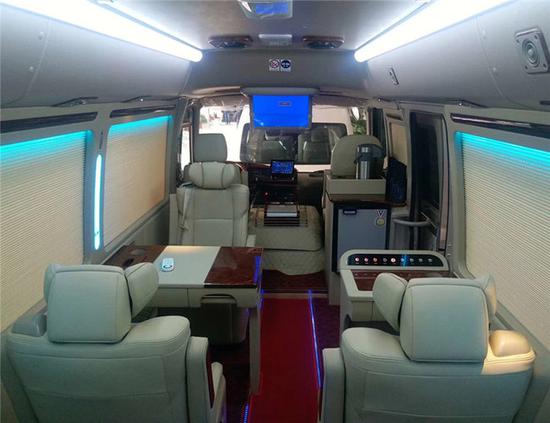 至于在座椅或者地毯的选择上,我们可以了解到,地毯和座椅都不同的型号和材质,我们可以根据自己的喜好选择想要的风格。地毯我们是可以分为散件地毯以及通道地毯,可以在车厢通道以及座位通道进行装饰,红色的地毯装饰使整个车厢显得端庄而又大方。如果我们不喜欢这款地毯,我们给整车加装实木地毯,相对于其他的地毯,实木地毯更加容易清洁,整个车厢就是另外一种氛围了。