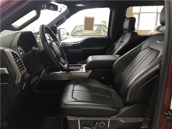 福特猛禽F150内饰采用独特的中控台和门饰板面漆和真皮包裹的方向盘。中控台部分辅以银色饰板装饰,六指针仪表盘的设计有些后工业时代的复古风格。采用带电冷热功能的可记忆式皮革座椅,头枕四向可调,搭配铝饰条和黑色钢琴烤漆内饰。可电动升降的后窗带隔板和电热除霜功能。