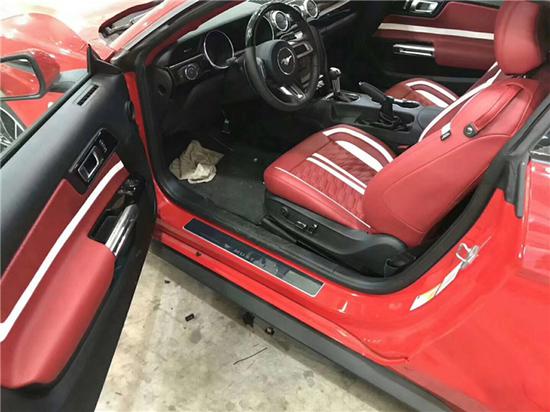 内饰方面:2018款福特野马车厢内部铝质饰件更加让人感受到野马的技术之精良。三幅方向盘直径很大,握在手里就会有种掌控一切的感觉。宽大的真皮座椅和门板整片的塑料都是绝对的美国车范儿。内饰简单中却透露着一种原始的粗犷和令人上瘾的刺激感。福特野马2.3T这次全部改为真正的铝合金面板,甚至连方向盘上的银色部分。也是金属材料,用强烈的金属感来衬托外形的肌肉感,同时能够满足现代时尚的审美观。新车中控台中央增加了一个大尺寸的屏幕,下方按键的排列也有所调整,车内散发的那种稳重硬朗的气质,让人很容易感受得到。圆形的空调出风口可以向任意角度送风,时尚又实用,此外,新车还将搭载福特与微软共同发的SYNC系统。