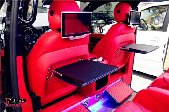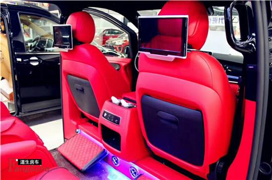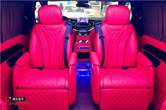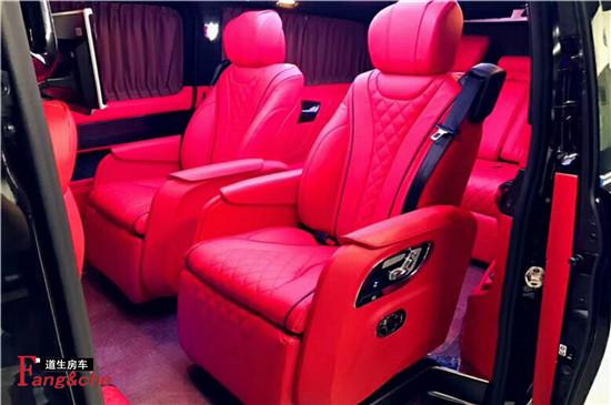 进口奔驰V250进口V级全车采用了七座式设计,第二排两个进口云锦装饰航空座椅,自带旋转,通风加热,气动按摩,第三排座椅可以180度放到成床,让您在路途中释放疲惫的身体。车顶采用迈巴赫九宫格顶,给人一种温馨,宜家宜商。