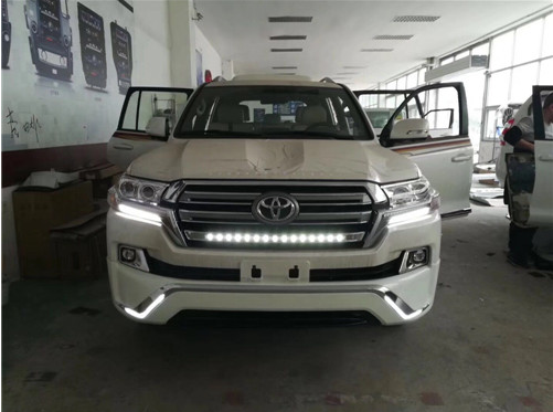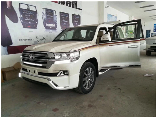 18款中东版酷路泽4000 前后包围我觉得是必改的一项,改完会让整车更立体,看上去更宽阔,显档次,配上雾灯和尾翼,堪称完美。踏板还是航空踏板最好看,黑踏太lou,电踏太丑。行李架也是必须得有的,没有行李架看上去光秃秃的,太难看了。镀络两条我觉得可有可无,没有镀络看上去也挺好看。至于轮毂,我得跟大家说一下,如果喜欢玩越野,喜欢穿沙或者玩极限的,就不能改轮毂了,大尺寸的轮毂外观很好看,但是只适合普通路面,不能玩越野。