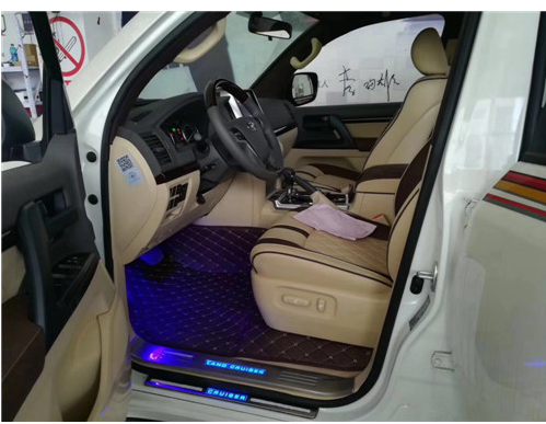 说完外观我们来说说内饰,说先真皮座椅也是个必改项,原厂的绒布座椅坐着是舒服,但是太难清理了,特别是家里有小孩的,千万不能用绒布座椅,否则你一定会后悔。酷路泽改装空间大,光是真皮座椅你就有十几种选择,包括皮质的好坏,还有颜色和风格,今天给大家展示的这台车是我比较喜欢的一个风格,也算是搭配的最好的了,酷路泽米色内饰居多,米色只能搭配浅色系真皮,不像黑色那么百搭,大家可以参考下。另外还有电动座椅,但如果是我的话,我不一定会选择该电动座椅,首先我问大家,你们开车这么久,调过几次座椅位置,调整座椅次数这么少,我觉得电动和手动也就没多大区别了。而且,改电座肯定要牵扯到电路,原厂的线路能不动最好不动,十次汽车自燃,最少有七八次是因为后改电路惹的祸。