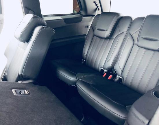 最受欢迎的深咖色座椅本款虽然是黑色座椅,但选装了哈曼卡顿音响、全景天窗、第二排电动折叠和打开(第三排电动折叠是标配),可以说是满配全选了。