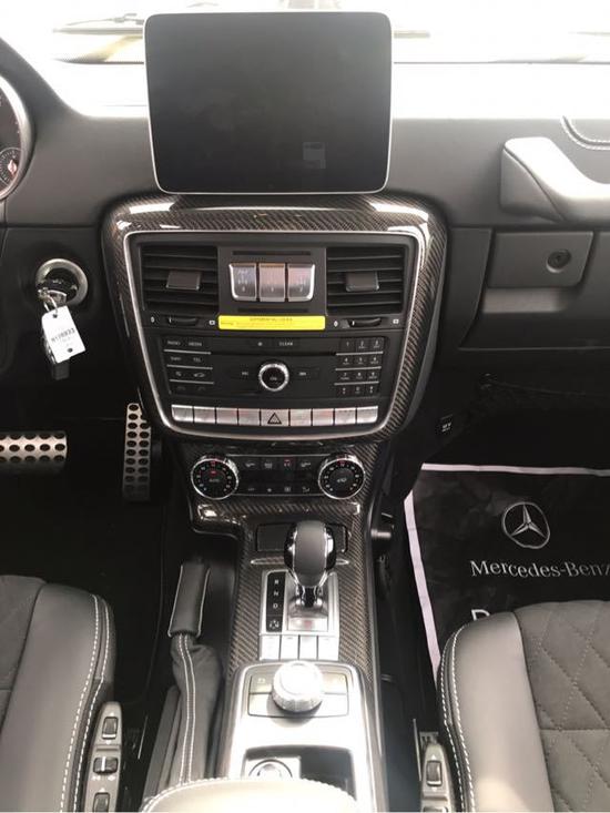 2017款奔驰G5504x4²离地距离 450mm、涉水能力 1米、轮胎间距 1.744mm、3种驱动模式、22寸轮毂、每个轮胎带有两个减震器及两个悬架弹簧 22轮;红卡钳;双减震;单天窗;氙气大灯;LED日行灯;18向多轮廓电动包裹座椅;翻毛皮内饰(皮+翻毛皮双拼座椅;翻毛皮方向盘;翻毛皮门板;翻毛皮内顶);前座椅加热通风;二排座椅加热;哈曼卡顿音响(14个扬声器);三把差速锁;碳纤维内饰套件;脚踏;前雷达;倒影;导航;多功能方向盘;定速巡航;换挡拨片。