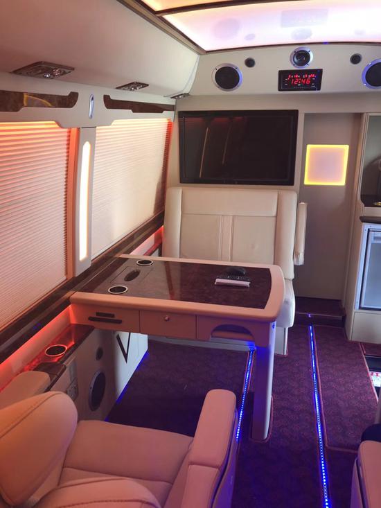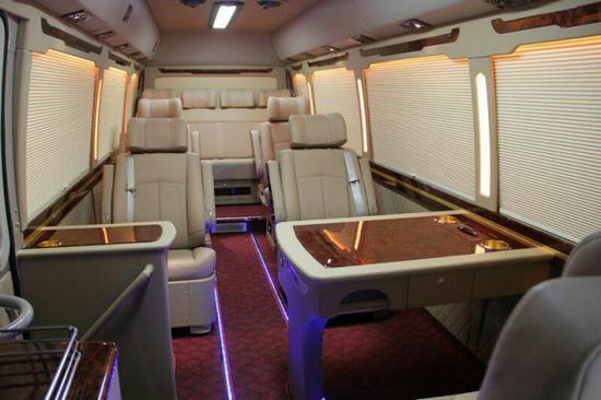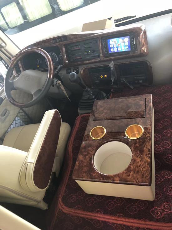 丰田考斯特改装商务车在内饰的其他的规划上,也充沛体现了改装的特征之处。丰田考斯特改装商务车内饰的灯光,地毯,窗布,工作桌,车载冰箱,雨伞柜,酒柜,距离,迎宾标志,车内驾驶席的半桃木装饰既可以前进丰田考斯特改装商务车内饰的美丽,也为人们在搭车过程中供应了愈加舒适和有用的工作环境。