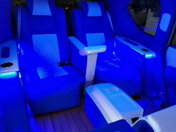 这辆途乐的后排的改装更加彻底将原有的座椅拆掉 换成了进口带通风 加热 按摩功能的航空座椅 前方还带有独立酒柜 冰箱 让你在炎炎夏日来上一杯冰凉的香槟那感觉就一个字 爽 加装整体氛围灯 让整车更显夜店风 24个扬声器的BOSE音响给你天籁 (配置|询价)般的享受