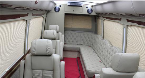 车内的内饰改装才是彰显尊贵的主要内容。如果这是一款接待用车,17座的丰田考斯特改装车的容量足以满足你接待大型的客户参观工作。而且从车内座位的布局上我们可以发现,丰田考斯特17座改装车采取的座位布局是由后排到前排为43332的座位安排呢,再加上主副驾驶席。但是我们也可以发现主副驾驶席是可以和乘客车厢之间用隔断隔开的。在隔断上我们可以安装大屏幕液晶显示屏。在接待来宾之时 我们便可以借此介绍或者宣传我们的企业或者产品。