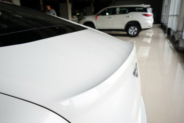 冰川白外观 黑色内饰 白色对比色刺绣。