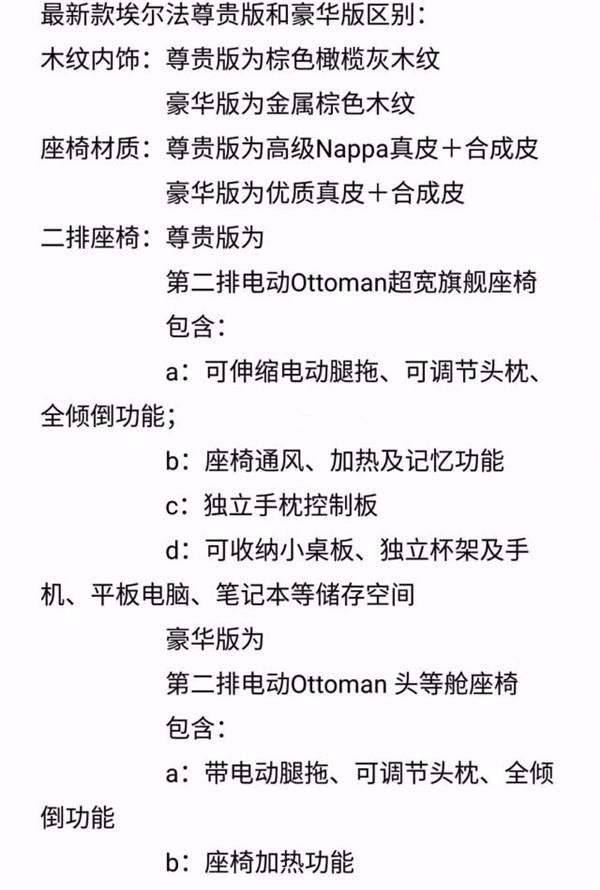 | 2019款埃尔法 中规版 | 白\米 白\黑 黑\黑 黑\米 红\米 灰\米 | 豪华版 77万2+ 77万4+ 尊贵版 82万3+ 82万5+ | 埃尔法加价可能会高 |