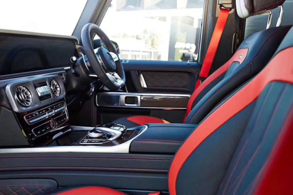 19款全新G63内饰方面,新G63保留了新G500的整体设计,除配色差异外,新车还换装了全新造型的平底式AMG运动方向盘,其两侧配以打孔皮质包裹,下部镀铬装饰的造型也与新G 500明显不同,看上去十分战斗。此外,全液晶仪表盘+中控大屏的双12.3英寸屏幕设计在新车上也没有缺席,营造出了浓郁的科技感。