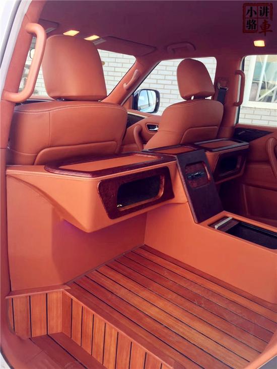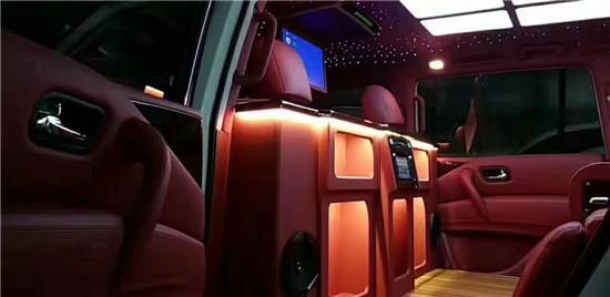 18款日产途乐Y62中东版4.0内饰兼具了舒适性和功能性。仍然为三排座车型,内饰材质也更加的考究,使用了皮革,铝以及木纹样条作为点缀。中控部分的设计比较具有豪华感,标准日系豪华车的风格,BOSE音响是很多中高端车所选用的,音响效果不会让你失望。日产尼桑途乐宽敞的乘坐和储物空间使其能够轻松地应对载人和载物等基本的车辆用途。也有很高的利用率。