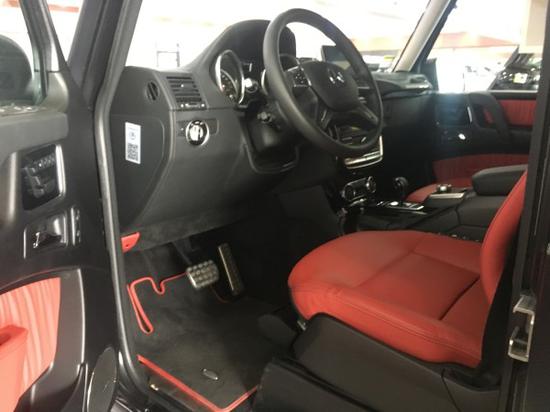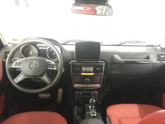 奔驰G550 磨砂黑/红内 配置:4.0Tv8汽油发动机 7速自动变速箱 19寸AMG全季节轮毂 滑动天窗 双区自动控制 奔驰COMAND独立影音控制系统 导航 蓝牙 媒体界面 哈曼卡顿音响 卫星收音机 交通天气服务 奔驰停车辅助 电动加热通风前座椅 后座椅加热 第二排座椅放倒 前后间歇式雨水感应器 氛围照明 私密玻璃 防盗系统 雷达测距 盲点辅助 电子稳定系统 拖车稳定系统 防抱死制动系统 刹车辅助 安全座椅接口 LED日间行车灯 双氙气大灯 自动头灯 微光传感器 定位照明 倒影 选配designo红色Nappa座椅 可调悬架 19AMG5幅熏黑轮毂 加热方向盘 designo黑色钢琴漆木质装饰 designo黑色内顶