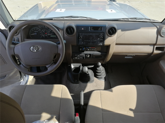 内饰方面:进口丰田LC76标配内部空间采用了符合人体工学的设计理念,内部空间非常充裕,设计比较简洁。平整而扎实的底盘是通过性的良好保障,不然一次跳跃就有可能折断半轴或者悬架的部件,把你撂在路上动弹不得。