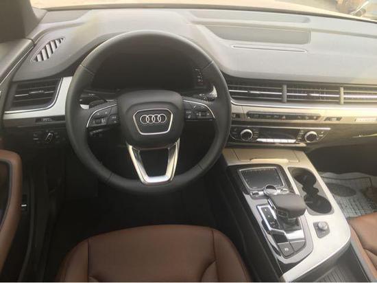 天津升辉国际奥迪Q7 (配置|询价) 加版现车大批到店,2018款现车促销64.5w,喜欢的朋友可来电咨询,分期没有手续费。今天给大家推荐的这款进口奥迪Q7,奥迪Q7简洁流畅的车身线条塑造出极富运动感的整体造型。3D进气格栅采用横向镀铬饰条,大大增强越野视觉,梯形尾灯设计提高了车辆视觉上的稳定感,低调内敛;此外,独特的轮眉设计、quattro 标识的侧面饰条、箭形设计的LED矩阵式大灯更彰显了不凡个性。