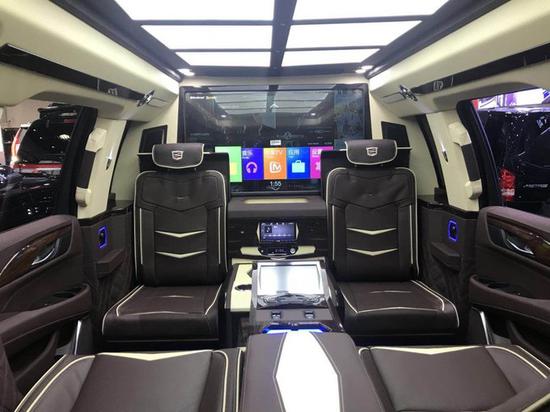 凯迪拉克总统一号桌椅设置操控屏,简单方便,扶手台影藏一个简约的储物柜。奢华游艇木地板,有种复古格调凯迪拉克总统一号凯迪拉克总统一号让你在商务谈判中更胜一筹,全车采用真皮包裹拥有透气性、电动按摩及电动加热系统,保证整了质感的同时也保证了座椅的舒适性。