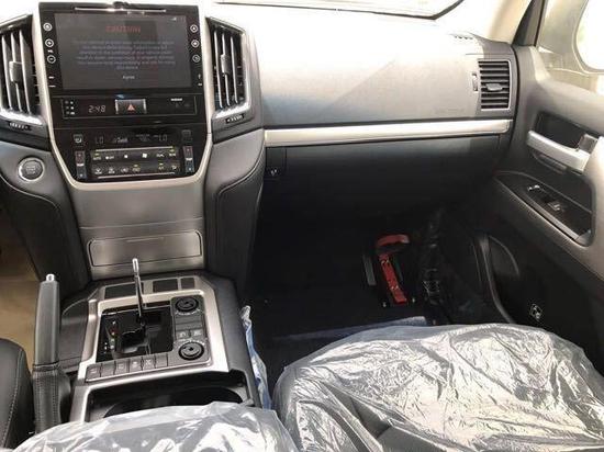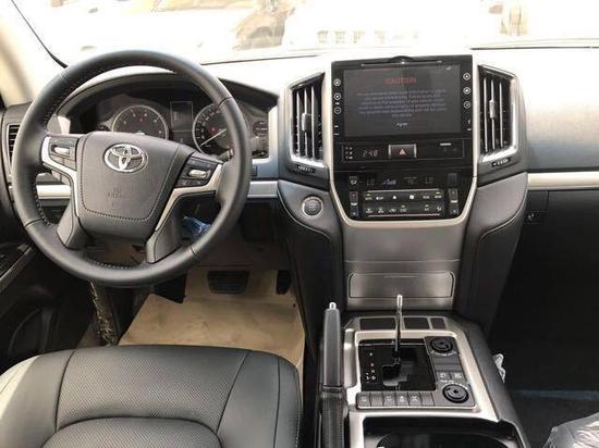 丰田酷路泽5700整个操控区域色调为 深色系,仪表盘、方向盘和排挡等位置均配以桃木装 点,尽显豪华质感。不但具有DVD导航,这款车的倒车 影像还可以显示在内后视镜上;中央扶手箱还装备了冷藏 箱,这些都与中规版车型有所不同。