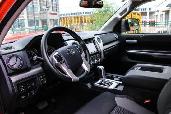 18款丰田坦途新车稳重大气只中透露着温馨,整体布局干净利落,内部装饰更接近SUV,肌肉感的设计同样延续到内饰的设计中,木质的应用让这辆车拥有了几份细腻典雅的感觉。