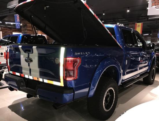 福特F150谢尔比700匹超大马力机械增压发动机、进气管福特蓝粉末涂层、Shelby蚀刻输油管、鼓风机和皮带轮、开放式进气口配有高速燃油喷嘴和碳纤维进气管、铝制热交换器、Shelby调校的BORLA高性能排气管、黑色陶瓷表面双排气管、Shelby BDS悬挂、Shelby设计的减震系统 、猛禽款式FOX减震(4轮)、2.5英寸FOX铝制储藏式减震、Fox国际迂回技术、可调式双速度控制(4轮)。