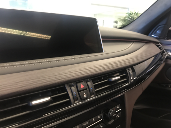 2018款宝马X5操控区域依旧沿袭宝马X系专属设计理念,内装格调优雅,除了驾驶仪表盘之外,整个控制台显得更低,增加了车内空间的明亮感,中央液晶显示器换成了薄片独立悬浮式设计的大屏幕。下面依次是空调调节和音响控制,中间点缀有实木装饰面板及铝质装饰条。宝马方向盘设计总是感觉比其他品牌的车型粗壮一些,手感非常扎实,新X5自然继承了这点。