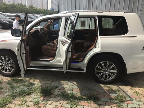 轮毂采用的是雷克萨斯LX (配置|询价)570的高端轮毂,开门后耀眼的发光门槛亮条夜晚的时候配备美女出行的时候那格调相当的嗨皮,门板上采用的是最新款的祥云彩条,腰线上面也可以加装防擦条,以防侧面汇车碰撞。